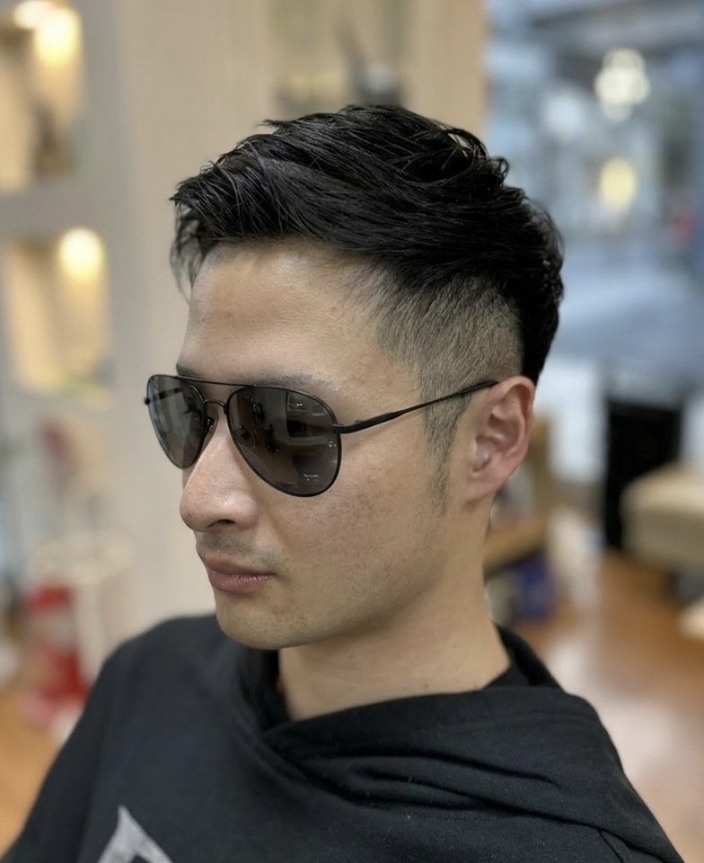 ツーブロック×トップに流れを出したショートスタイルで解決