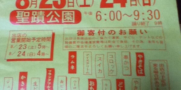 23(土)、24(日)は北品川二丁目町会の盆踊りです。 当店近くの聖蹟公園で開催されます。 Post navigationPreviousPrevious post:品川区内共通商品券のお知らせNextNext post:おはようございます。