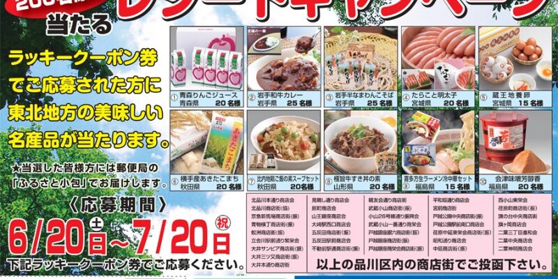 品川区の商店街で1000円以上のレシートで一口応募出来ます。 当店のレシートでしたら必ず一口分。 是非東北地方の名産品を当てちゃって下さい!! 応募券に限りがありますのでお早目にどうぞ。 Post navigationPreviousPrevious post:おはようございます。NextNext post:21日(日)の予約状況