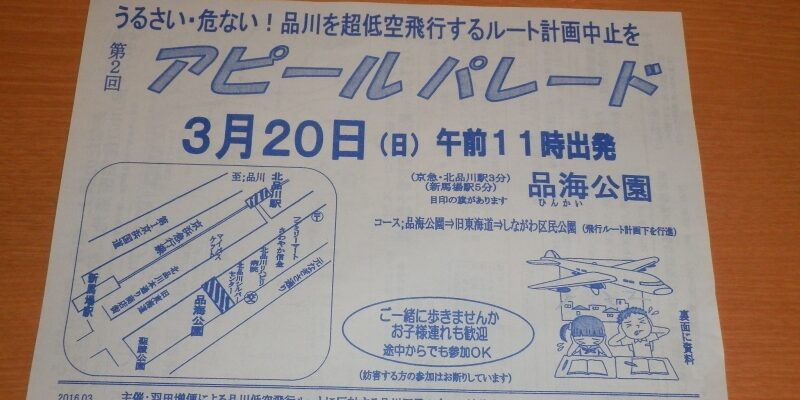 明日から三連休ですね。 羨ましいです。 三連休中に北品川ではこんなイベントがあるそうです。 羽田空港の増便によるルート変更に反対する集会ですね。 住んでる方としては騒音は嫌ですが経済が活性化するといわれると悩ましい問題です。 本日、予約に余裕がありますのでご来店、ご予約お待ちしております。 Post navigationPreviousPrevious post:おはようございます。NextNext post:19日(土)の予約状況