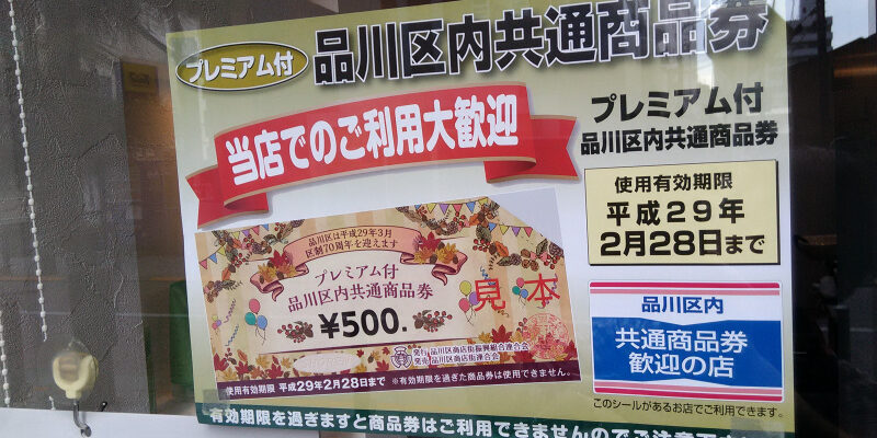 今度発売されるプレミアム付き品川区内共通商品券は当店でも使えます。 購入予定の方は是非使っちゃってくださいね。 少しお得になります。 もちろんプレミアム付きじゃない品川区内共通商品券も使えます。 今週もよろしくお願いします。 Post navigationPreviousPrevious post:17日(月)18日(火)は定休日です。NextNext post:おはようございます。