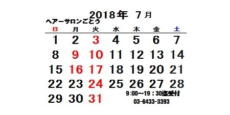 今週も暑い中のご来店ありがとうございました🙇 3日火曜日は定休日です。 また水曜日からよろしくお願いします。 奥様担当のレディースシェービングは10時以降ご希望のお時間で予約出来ますのでご連絡お待ちしております。 Post navigationPreviousPrevious post:2日月曜日営業スタートしました。NextNext post:今週末の予約状況