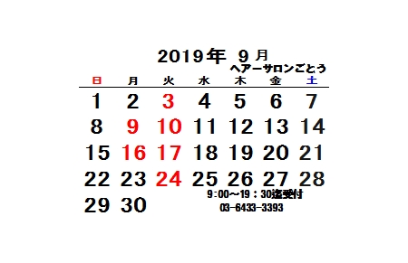 三日間共営業します! 皆様からのご連絡お待ちしております。 Post navigationPreviousPrevious post:白髪が気になる方にNextNext post:24日火曜日は定休日です。