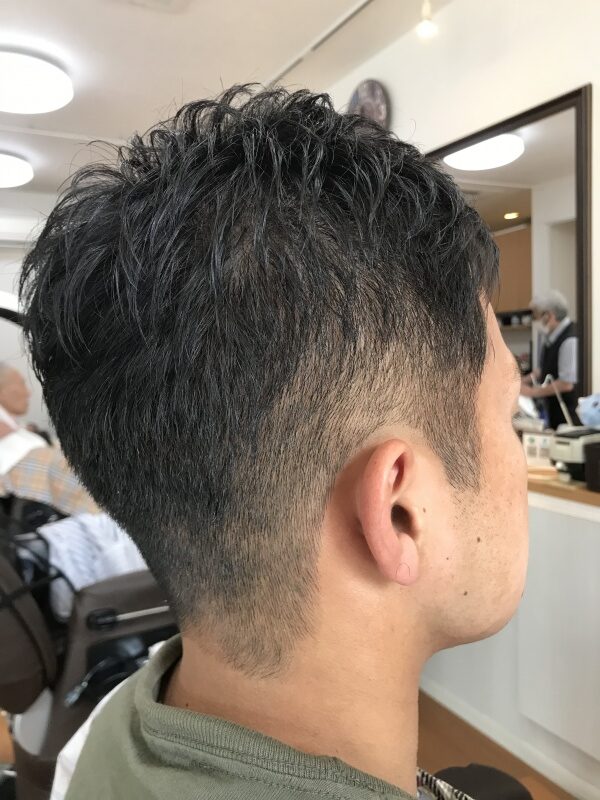 6〜3mmのバリカンで刈り上げて、トップは根元から梳いてサクサクに。