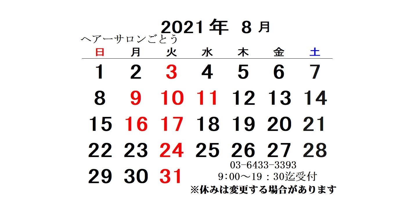 16日月曜日17日火曜日は定休日です。