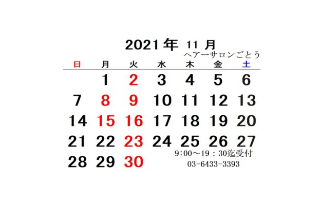 30日火曜日は定休日です。