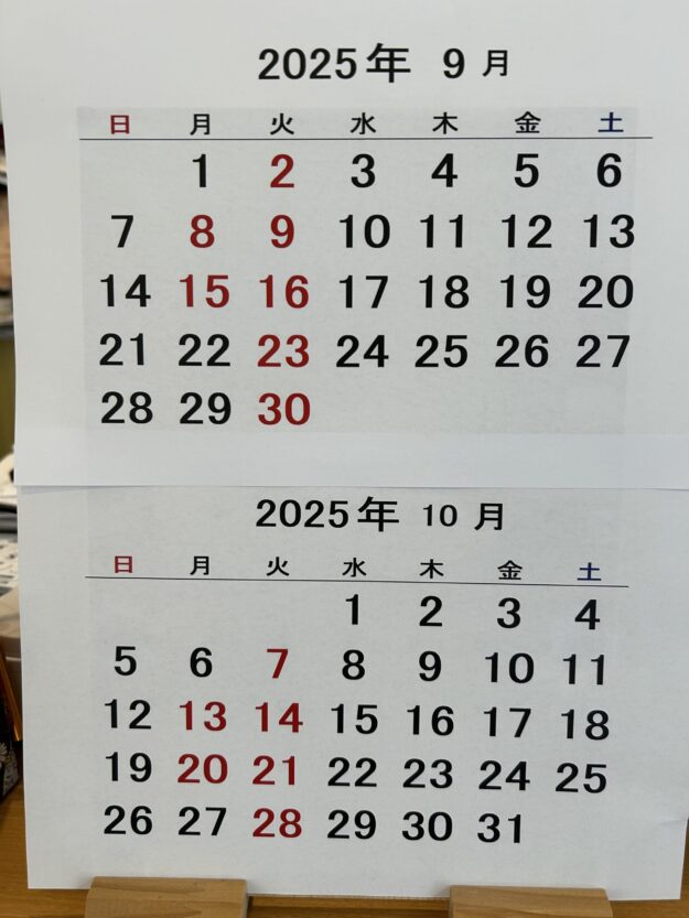 10,11月の定休日と年末のご予約に関するお知らせ
