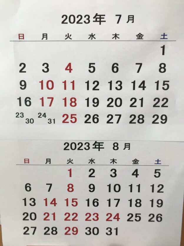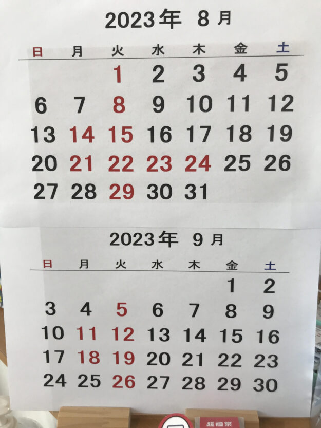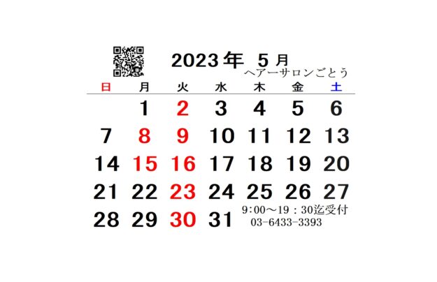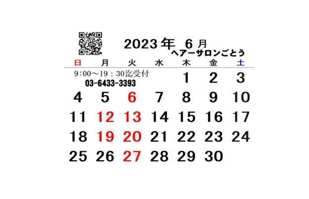 5月6月の定休日